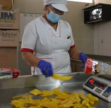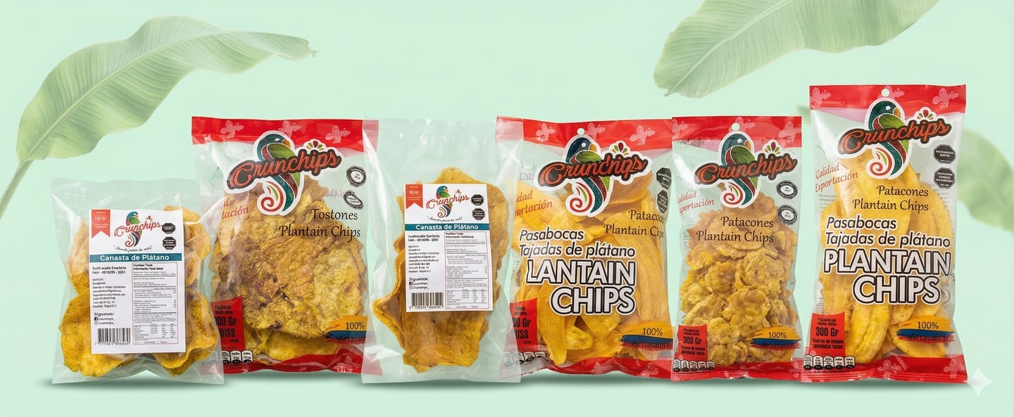 Crunchips, una empresa colombiana fundada en 2021, combina tradición y sostenibilidad en la producción de chips de plátano. Suministramos a clientes como el Grupo Éxito y tiendas locales, trabajando con comunidades rurales y campesinas para garantizar un producto de alta calidad y respetuoso con el medio ambiente. Nuestra misión es ofrecer un snack saludable y apoyar el desarrollo económico local.